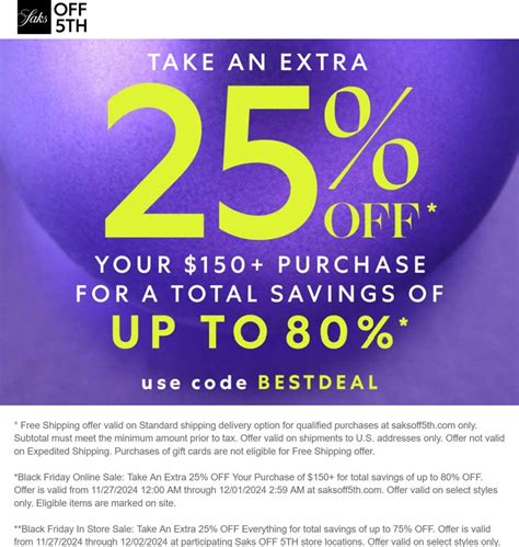 50 off 250 & more today at Saks Fifth Avenue via promo code STYLESF
