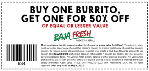 Baja Fresh Coupon Code. Our best baja fresh coupon offer: Web to redeem in store, must surrender paper copy of landing page coupon or present digital copy of landing page coupon.