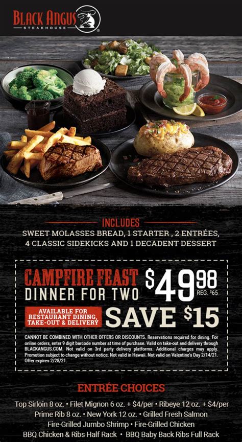 Dinner for two includes sweet. Web to redeem online, select at least one entree in the bogo category in the app or blackangus.com, then enter code. Get your favorite campfire feast for only $49.98 with this coupon!