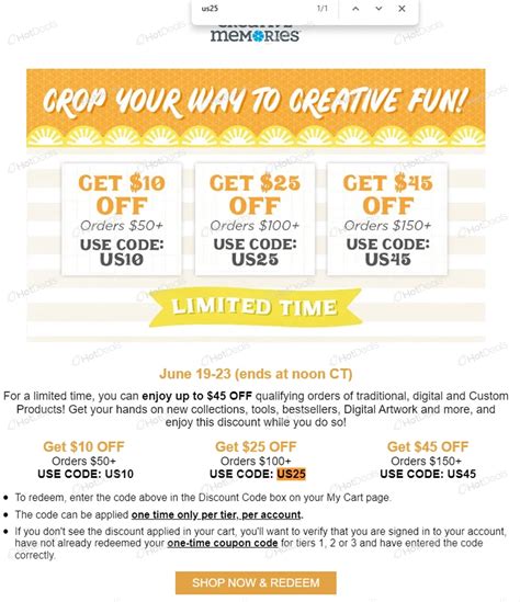 Creative Memories Coupon Code. Save with creativememories.com discount codes. Shoppers saved an average of $15.75 w/ creative memories discount codes, 25% off vouchers, free.