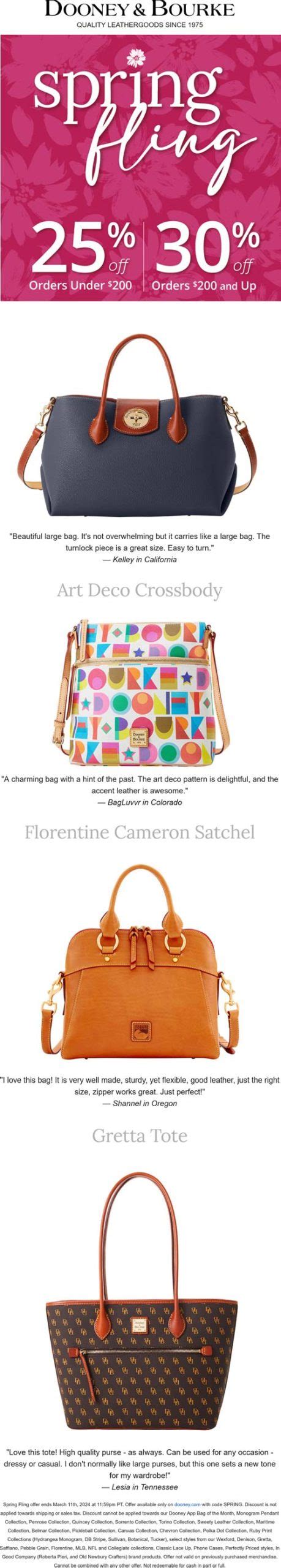 Web spend $100+ and get $20 off orders by applying this dooney and bourke coupon: