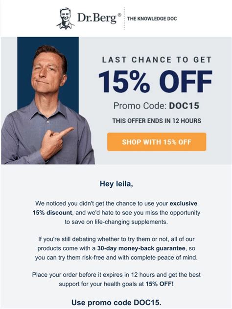 Dr Berg Coupon. Get 15% off your order with this dr. Berg discount code to save 20% on your purchases: