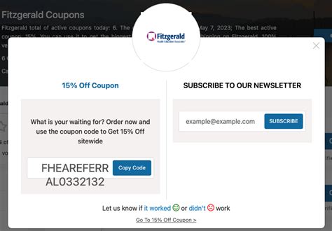 Fitzgerald Coupon Code. Try these 9 older and expired coupons; Save big w/ (6) fitzgerald verified discount codes & storewide coupon codes.