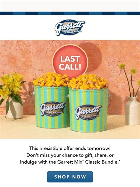 Web discounts of about $15 and free shipping codes are available to save on popcorn bundles, chocolates, cheesecorn, cocoa caramelcrisps, and more treats. Web 10 garrett popcorn coupon codes available today discount offer expires; Treat yourself with a valid garrett. Choose the best offers & deals starting at 15% off for january 2024! Save $15 on your chicago. Web get $10 off garrett popcorn coupon with email sign up. The latest garrettpopcorn.com coupon codes at couponfollow. Join us for free to earn cash back rewards on top. Web save at garrett popcorn with top coupons & promo codes verified by our experts. Web save up to 20% with these current garrett popcorn shops coupons for january 2024.