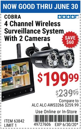 Web buy the cobra 4 channel wireless surveillance system with 2 cameras (item 63842) for $179.99 with coupon code. Web buy the cobra 4 channel wireless surveillance system with 2 cameras (item 63842) for $179.99 with coupon code.