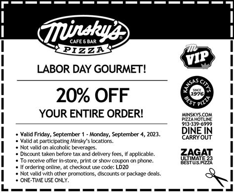 Web minsky's pizza coupons & promo codes: Happy new year special vips. 30% off (january 2024) we have 6 active codes for january 2024. Sunday, december 31, 2023, and monday, january 1, 2024. Save up to 30% at. Web minsky's pizza coupons & promo codes:
