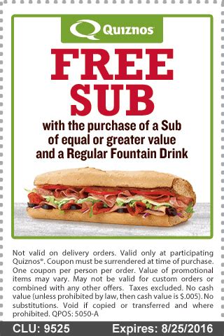 Quiznos Coupon Code. Web you can save money at quiznos by using one of the current quiznos coupons from slickdeals. Right now, there are 3 current.