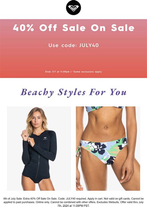 Roxy Online Coupon. Score 20% off orders by applying this roxy promo. Web get an extra 40% off sale with this roxy coupon code: