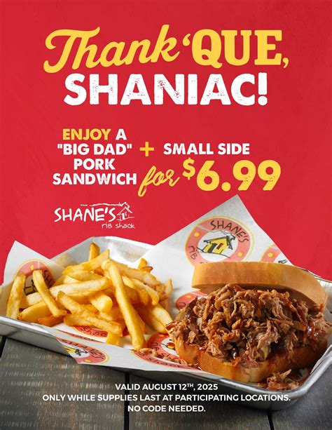 Ribday23 for 50% off, 2offsept for 10% off. Web the best shane's rib shack coupon codes in january 2024: