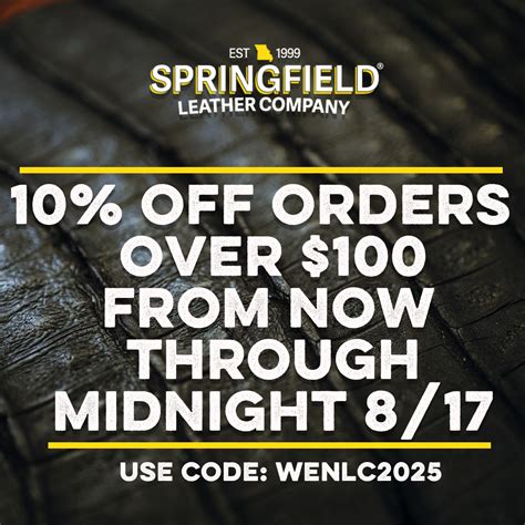 Web shop smart and save big with couponbirds! Click to enjoy the latest. Get 51 springfield leather promo code at couponbirds. Get amazing coupons with 10% off when purchase what you want. Save 10% off on your all order.