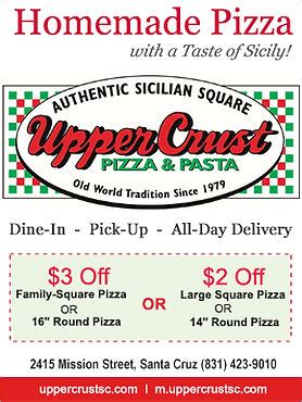 Upper Crust Pizza Coupon Codes. Get 24 upper crust pizzeria promo code at couponbirds. Join us for free to earn cash back.