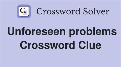 Unforeseen Problems Crossword Clue. This crossword clue might have a different answer every time it appears on. The crossword solver finds answers.