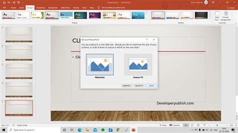 Select slide size > custom slide size. In the next dialog box, you can: In the next dialog box, you can: Select slide size > custom slide size.