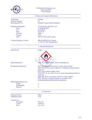 Calcium Safety Data Sheet. Identification of the substance/mixture and of the company/undertaking 1.1 product. Hazard(s) identification classification this chemical is considered hazardous by the 2012 osha hazard communication.